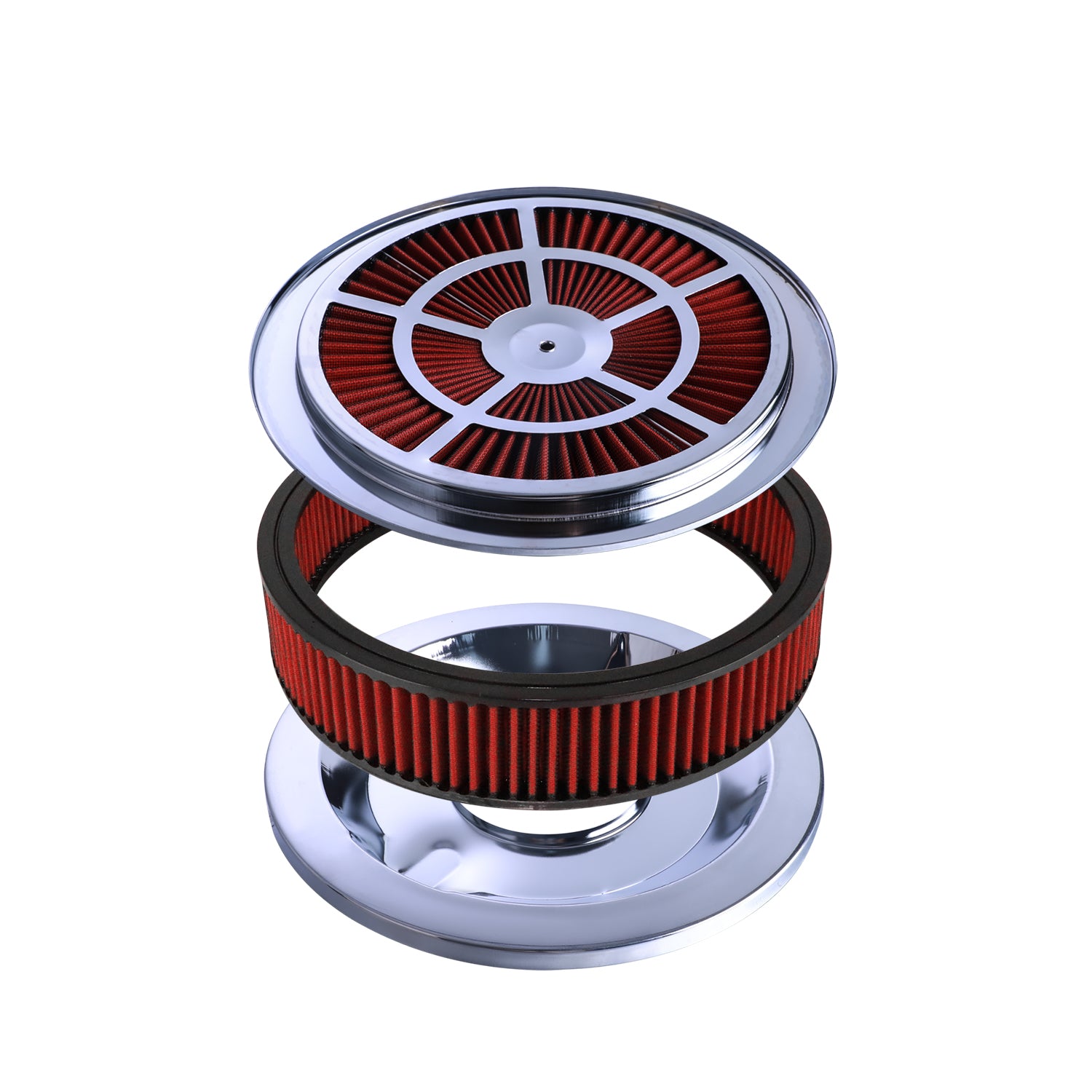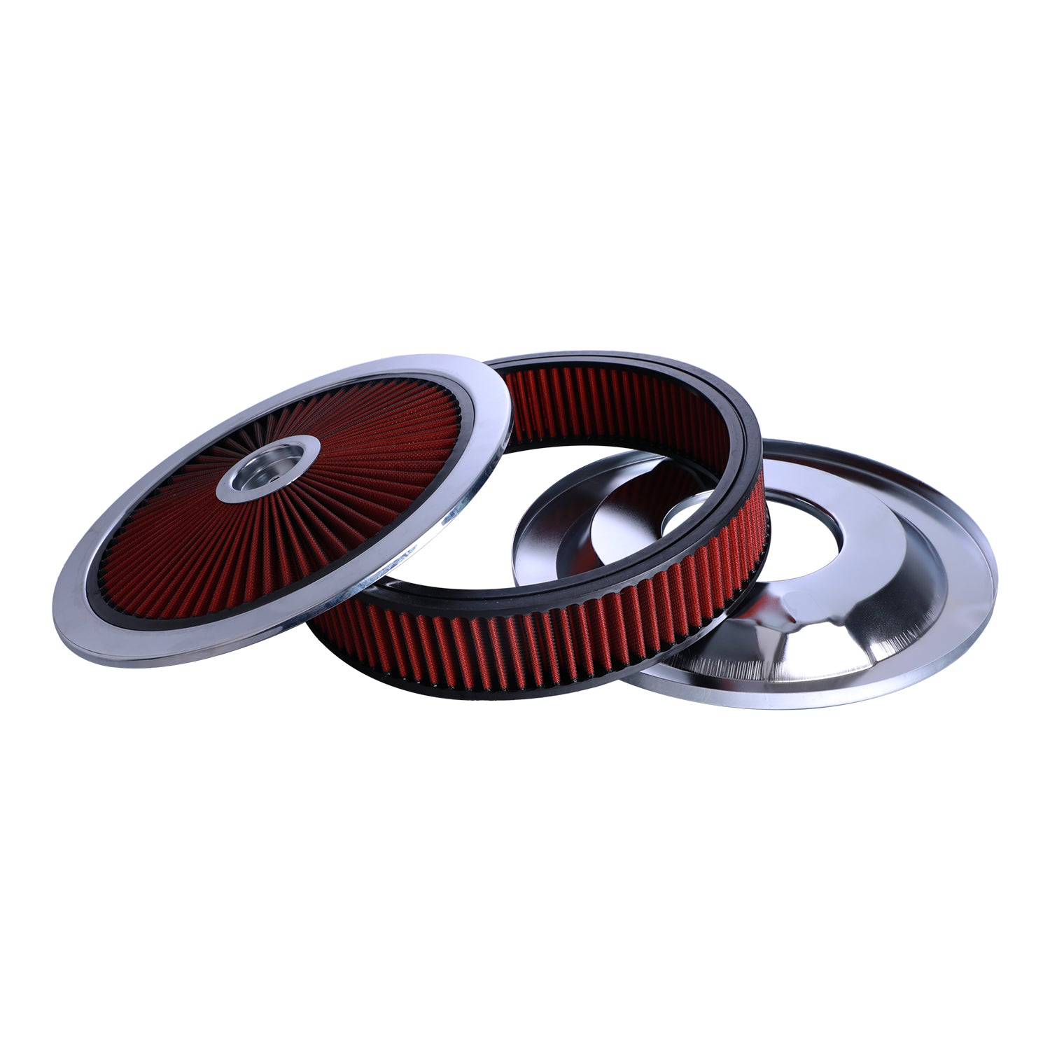 14" X 3" Round Red Thru High Flow Washable Air Cleaner w/ Chrome Lid For SBC BBC(4330CR)