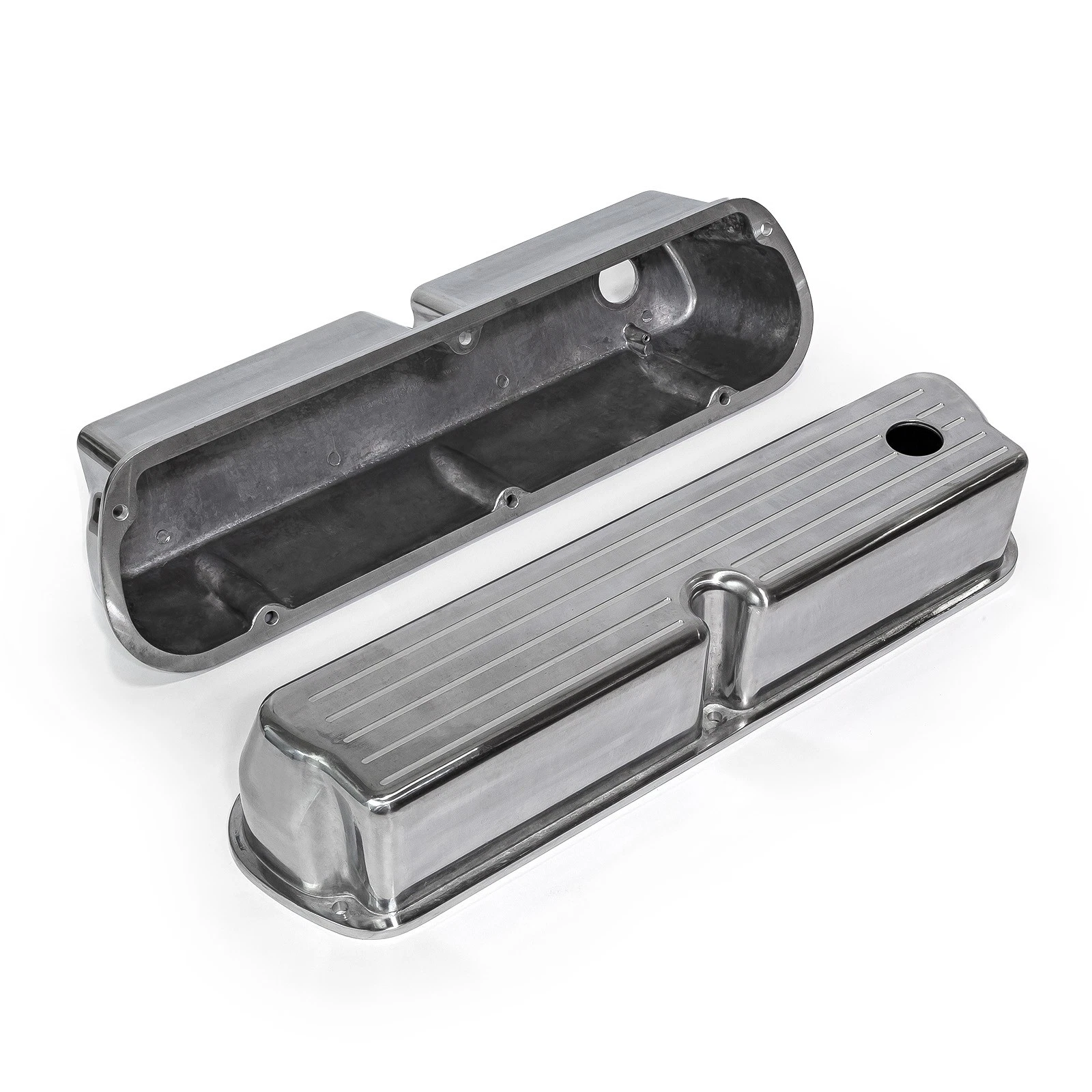 Chevy SB 396–502 Fabricated Aluminum Valve Covers – Tall, Polished, With Breather Holes