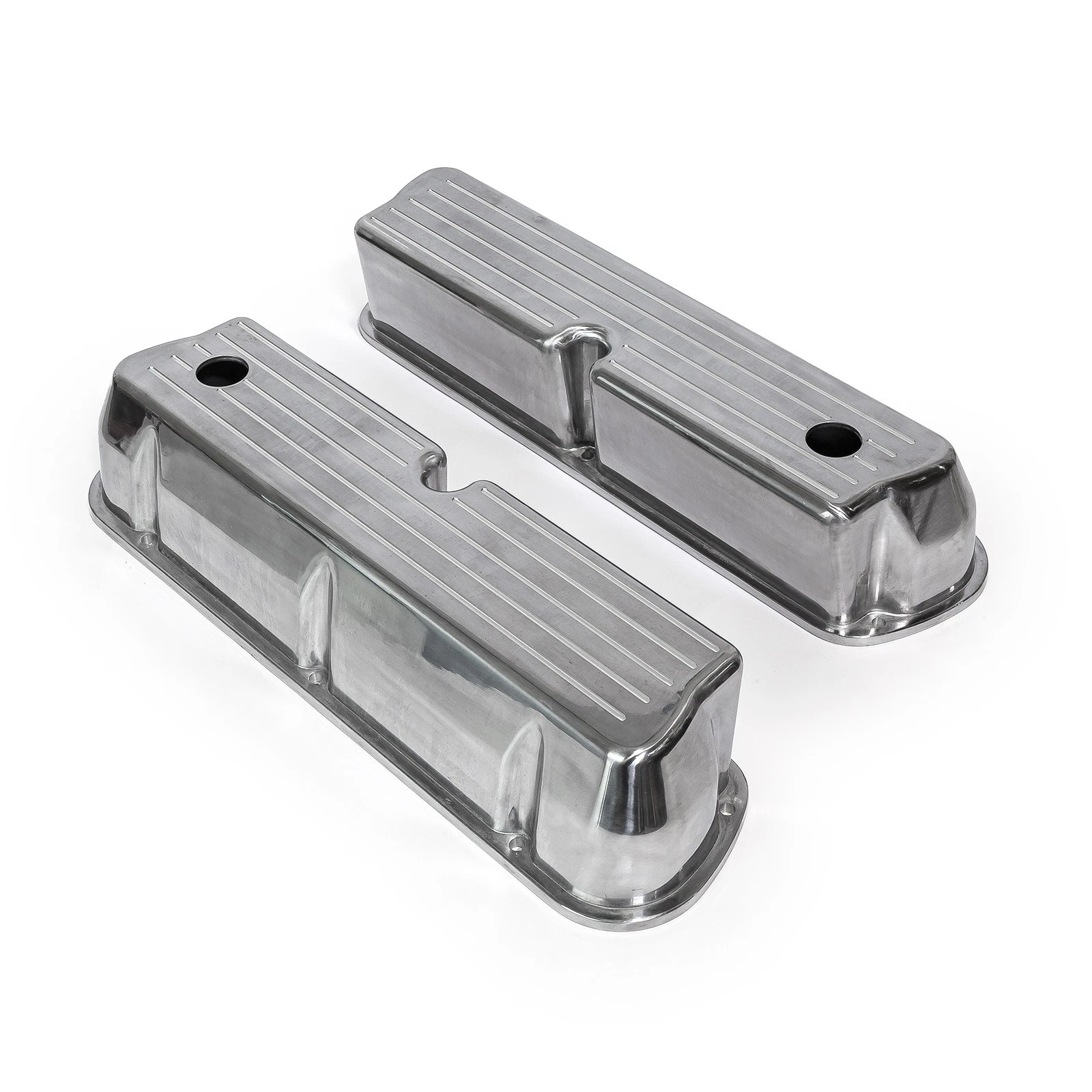 Ford SB 289–302–351W Finned Tall Cast Aluminum Valve Covers – Polished, Ball-Milled, With Breather Holes 1962–1985 (PVC8529)